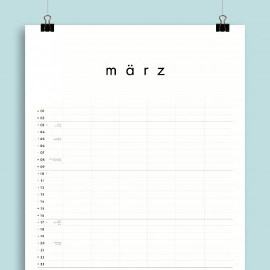 Dieser Kalender hilft euch dabei, alle Termine, Verabredungen, Geburtstage, Urlaube und Feiertage zu organisieren. Jedes Familienmitglied bekommt bei Bedarf und Wunsch eine eigene Spalte – so wird die Monatsplanung besonders übersichtlich. Das Format (Din A3 = 29,7 x 42 cm) bietet genug Platz, um alle Termine gut im Blick zu behalten. Gedruckt wird der Kalender auf mattes 160g-Naturpapier (fsc-zertifiziert, hochweiß). Die Druckqualität ist sehr hochwertig und fein.