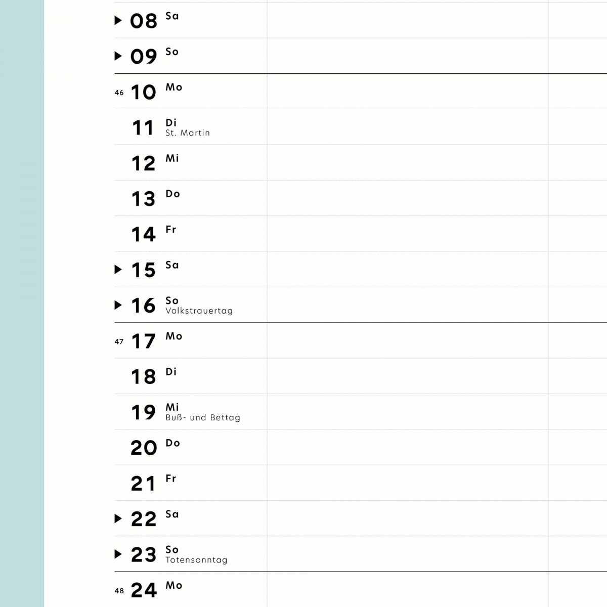 Im Kalender findest du alle wichtigen Feiertage Deutschlands, weitere wichtige (Feier)Tage wie Ramadan, Jom Kippur u.ä. sowie die Kalenderwochen.