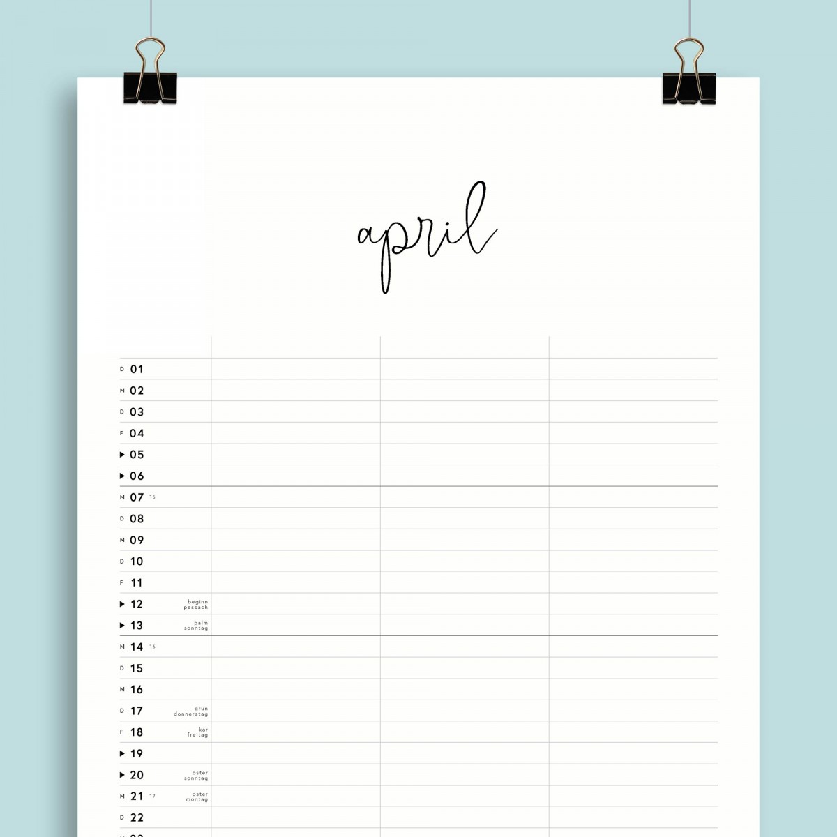Dieser Kalender hilft euch dabei, alle Termine, Verabredungen, Geburtstage, Urlaube und Feiertage zu organisieren. Jedes Familienmitglied bekommt bei Bedarf und Wunsch eine eigene Spalte – so wird die Monatsplanung besonders übersichtlich.