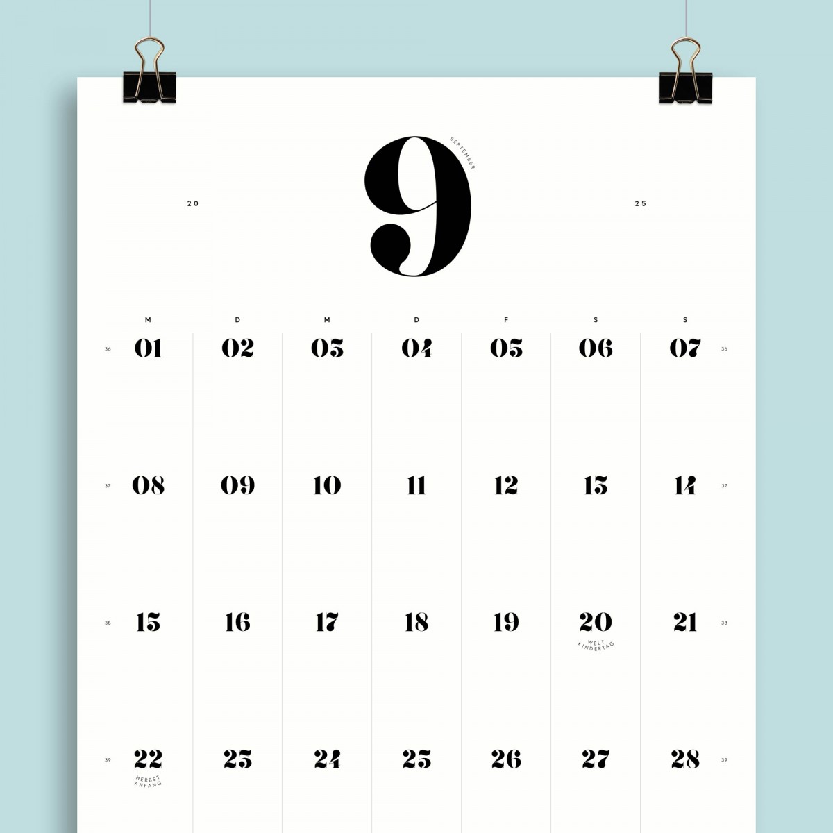 Mit diesem Kalender kommst du gut organisiert durch das nächste Jahr. Die minimalistische und zugleich raffinierte typografische Gestaltung ist sehr fein und edel, der Kalender ein absoluter Hingucker – trotz seiner Schlichtheit.