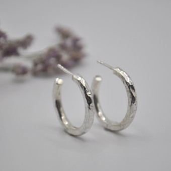 Der schmale Ohrkletterer "Gewandert" aus 925/- Silber ist ein kleiner, schlichter Hingucker. Er hat eine fein mattierte Oberfläche und eine leicht geschwungene Form.