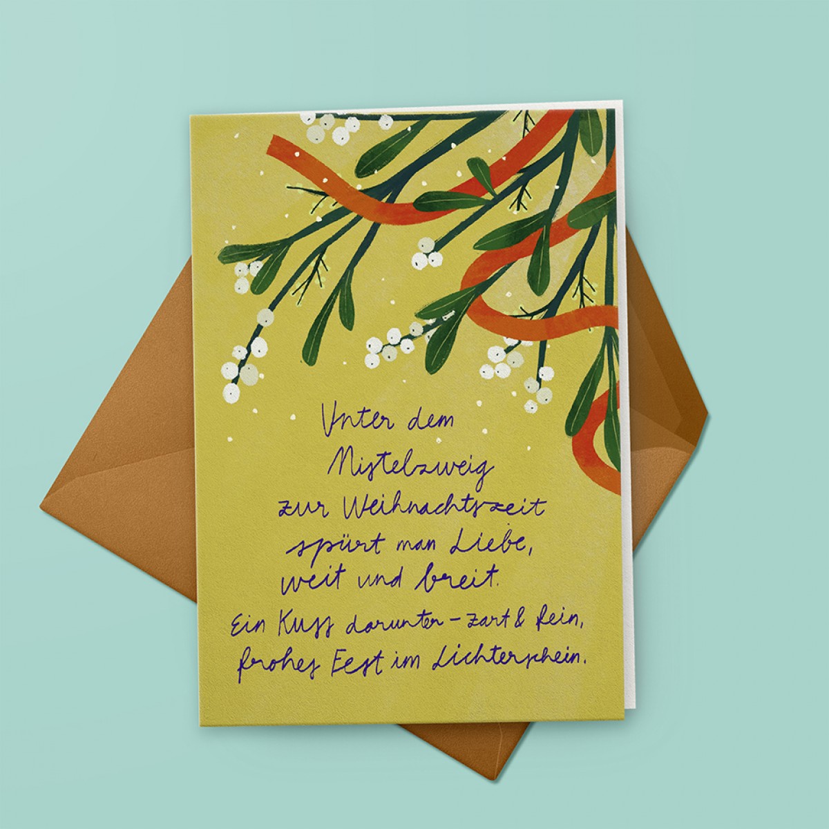 Eine feine, poetische Klappkarte. Passt super unter jeden Mistelzweig oder Weihnachtsbaum.