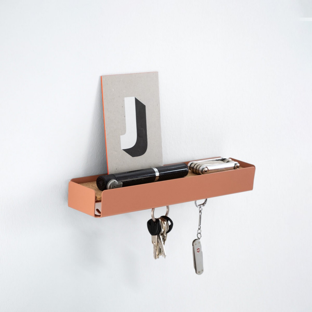 Das Schlüsselbrett ist in verschiedenen Farben erhältlich und passt zu jeder Einrichtung. Das edle Design des Schlüsselbretts stammt vom Design-Trio RSW und bringt eine schlichte Eleganz ins Chaos. Die Ablage bietet Platz für alles, was man sonst noch häufig zur Hand haben möchte, aber im Eifer des Gefechts nicht findet.