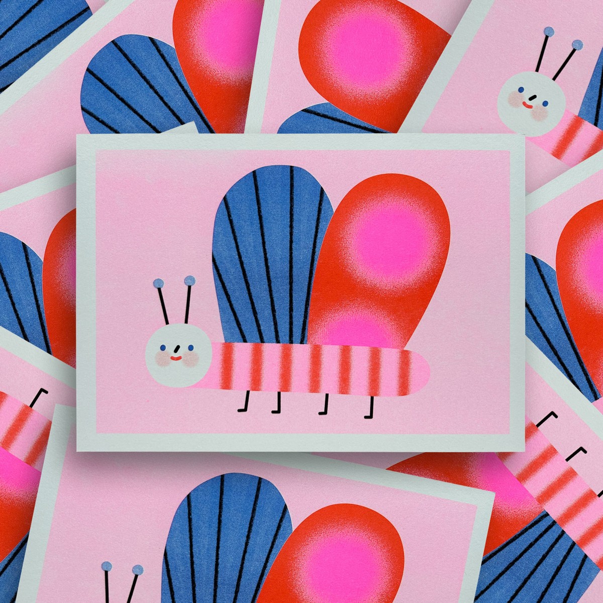 Der Kleine Schmetterling Riso Art Print, ist die perfekte Dekoration für das Kinderzimmer. Aber auch in Küche, Wohnzimmer oder Flur, dieser Kunstdruck bringt Farbe an deine Wände.