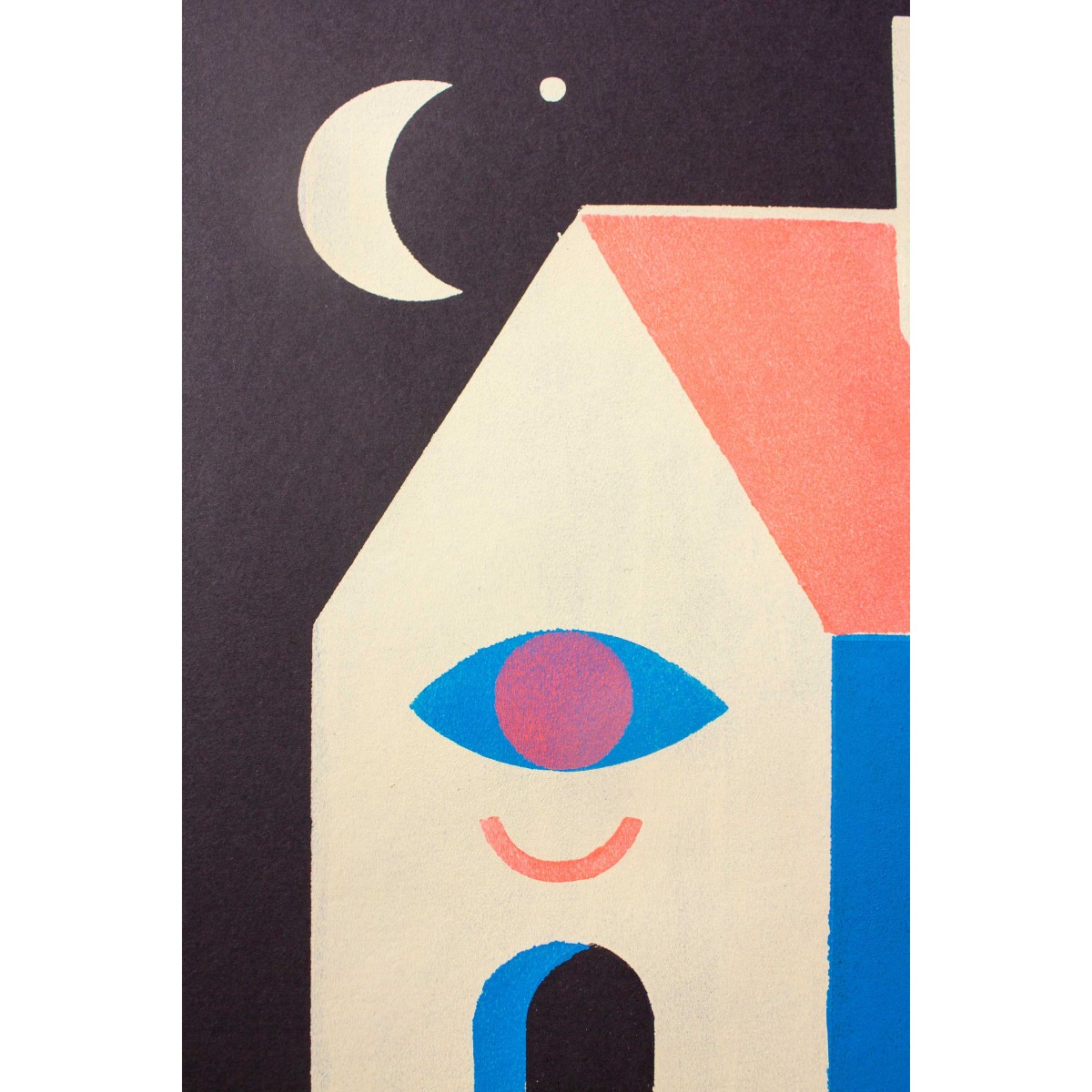 Vierfarbiger Druck im Schablonendruck per Hand auf schwarzem Fotokarton ( 50×70 cm, 400g/qm). Limitiert (10 Stück!), einzeln signiert und durchnummeriert. Individuelle Farbstiftungenzeichnungen/-striche auf dem Druck.