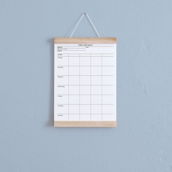 Ein minimalistischer Helfer, der auch außerhalb des Kinderzimmers als Unterstützung und Dekoration an der Wand hängen kann – ohne sich optisch aufzudrängen. Die Pfeile und Ziffern an den Zahlen, vermitteln die jeweiligen Schreibrichtungen.