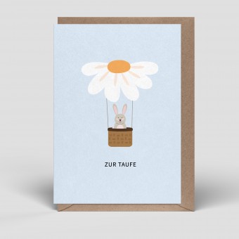 Klappkarte - Taufkarte - Hase im Ballon - Nr. 276 - Naturbedacht