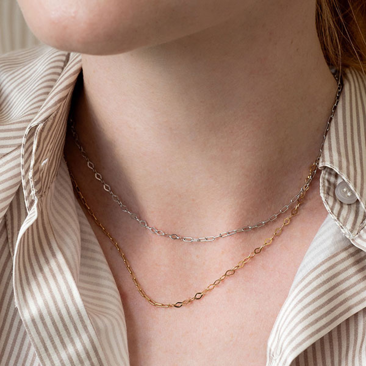 Eine Liason zweier Ketten. Halb verspielt, halb elegant – halb Diamantkette, halb Gliederkette vereint zu einem Collier.