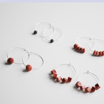 nahili CREOLEN "coral or lava" Ohrringe rota Koralle oder schwarzer Lavastein silbern nickelfrei