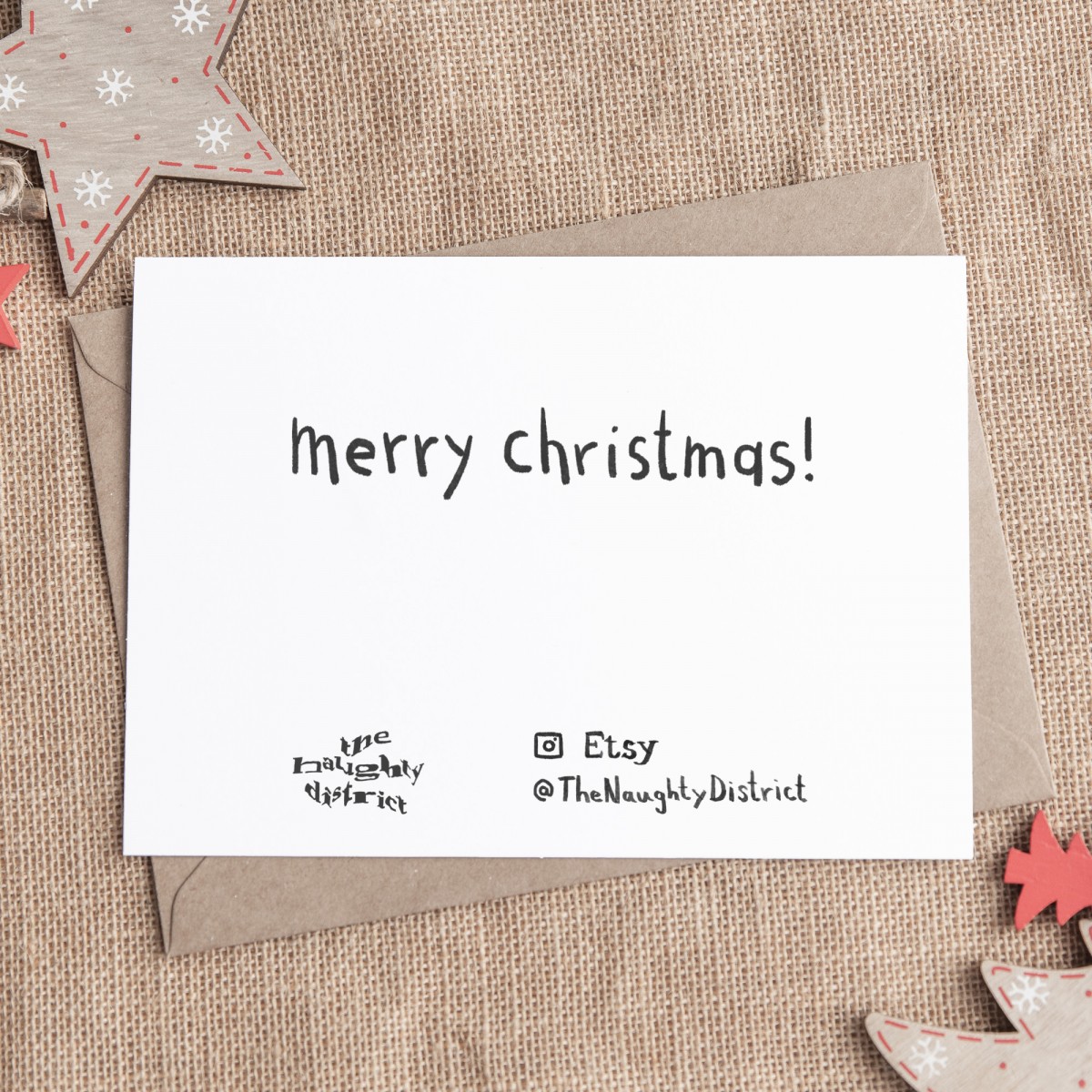 Aufklappbare, beschreibbare Weihnachtskarte aus 300g Naturkarton mit Umschlag aus braunem Recycling Recycling-Kraftpapier 130g im A6 Format (10,5cm x 14,8cm)